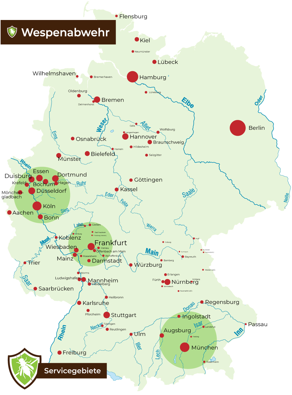 Wespenabwehr – vertreten mehreren Servicegebieten in Deutschland